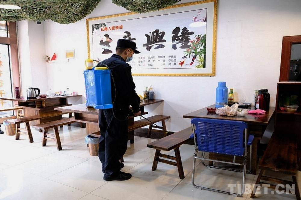 圖為民警在為飯店做消殺工作攝影:李錦輝