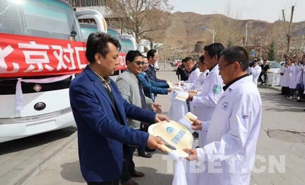 圖為北京對(duì)口支援玉樹體檢車捐贈(zèng)儀式現(xiàn)場