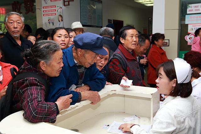 圖為當(dāng)?shù)厝罕娫阢氪h中醫(yī)醫(yī)院義診點(diǎn)排隊(duì)掛號。