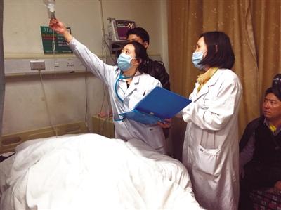 圖為近日,北京大學(xué)人民醫(yī)院第三批組團式援藏醫(yī)療隊隊長、自治區(qū)人民醫(yī)院內(nèi)分泌科副主任醫(yī)師羅櫻櫻(左一)正在查房。鄭少杰 高加庫 攝