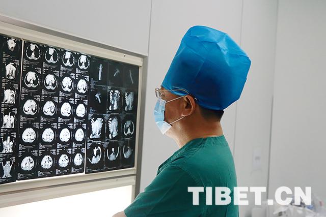 手術前,李寧院長再次核查格日的病情。攝影:陳衛(wèi)國