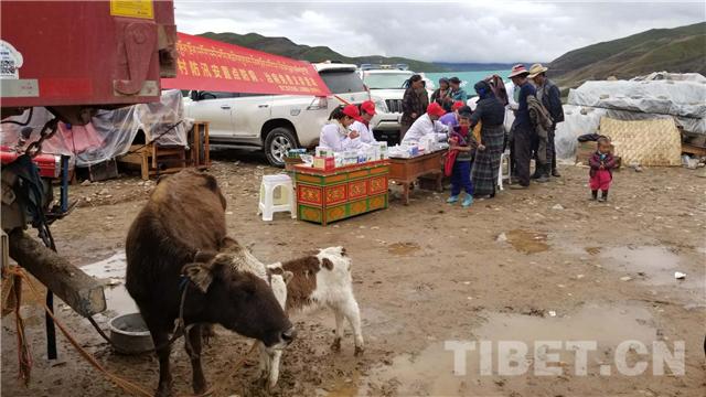 圖為昂仁縣醫(yī)護人員為群眾送醫(yī)送藥