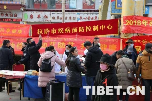 圖為拉薩市宇拓路防艾活動宣傳現(xiàn)場。
