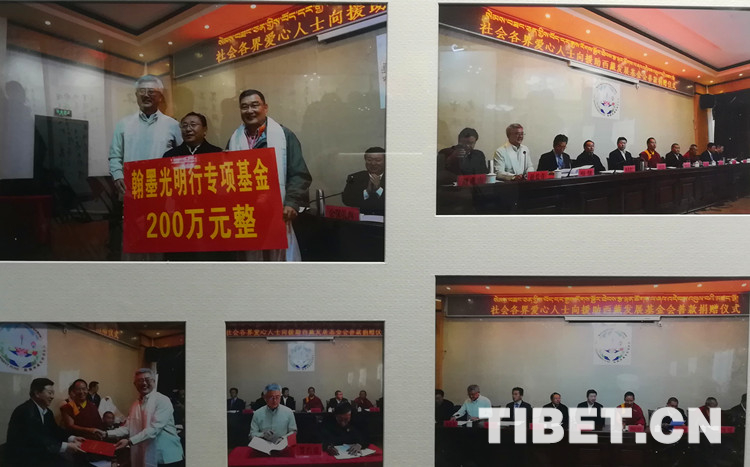 由已故的兩位偉大的愛國主義者、時任全國人大副委員長的十世班禪大師和阿沛 阿旺晉美倡議下,援助西藏發(fā)展基金會得以創(chuàng)建。2009年,在十一世班禪倡議下,援助西藏發(fā)展基金會聯(lián)合書法界共同發(fā)起了面向西藏和四省藏區(qū)長期無償提供醫(yī)療援助的公益活動——“翰墨光明行”。