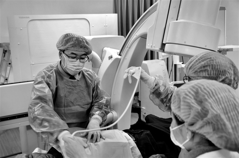 前幾天,今年82歲的洛桑老人感覺間歇性地腹痛,全身膚色泛黃,在拉薩市人民醫(yī)院初步診斷為梗阻性黃疸。在此之前,外科醫(yī)生已經(jīng)明確患者沒有開刀切除病變的可能性,并已經(jīng)嘗試過2次內(nèi)鏡下開通膽道,也均以失敗告終。19日上午,洛桑老人在家人的陪伴下來到拉薩市人民醫(yī)院導(dǎo)管室,準(zhǔn)備再次接受手術(shù)治療。記者在現(xiàn)場看到,手術(shù)開始之前,北京、拉薩兩地的醫(yī)學(xué)專家緊張有序地調(diào)整著設(shè)備,確保手術(shù)的順利進(jìn)行。幾分鐘后,手術(shù)正式開始,北京市“組團(tuán)式”援藏醫(yī)療隊(duì)成員魏紅濤和崔晏春,與拉薩市人民醫(yī)院醫(yī)生一起,共同為洛桑老人實(shí)施了手術(shù),手術(shù)過程中,大家相互交流相互協(xié)作,約1個(gè)小時(shí)后,手術(shù)成功的捷報(bào)傳出,每名醫(yī)護(hù)人員的臉上都掛滿了笑容。