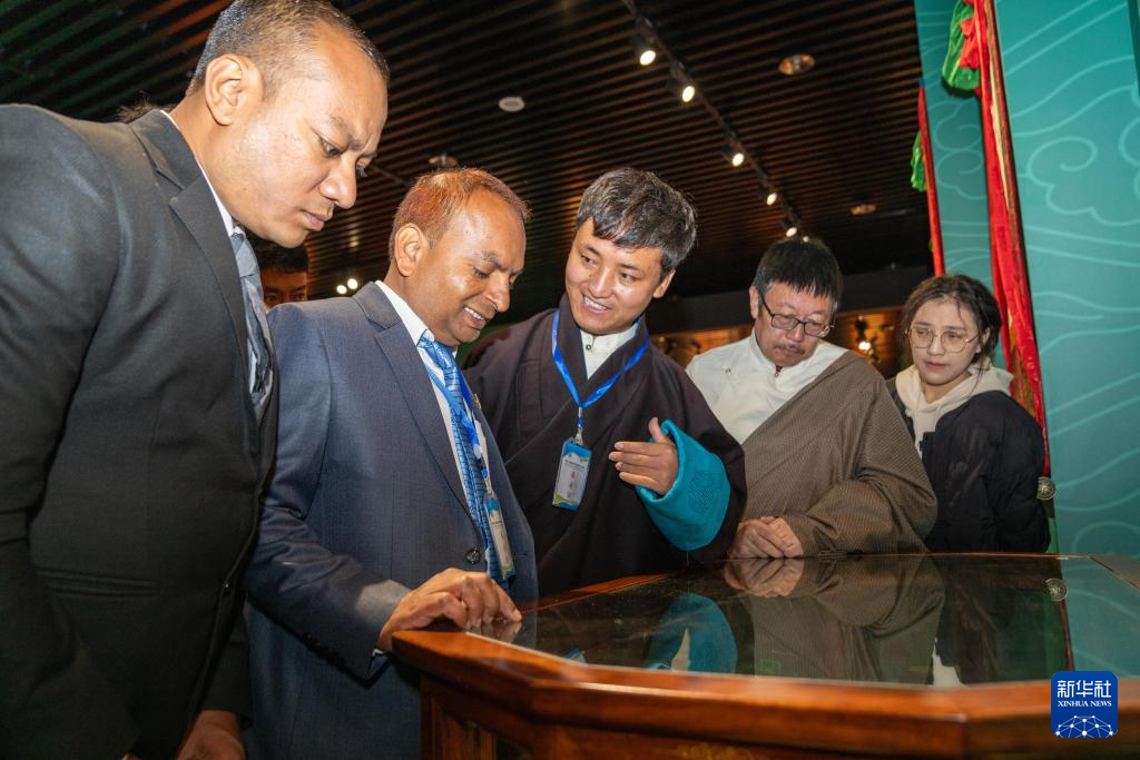 首屆《四部醫(yī)典》國際學(xué)術(shù)交流會(huì)參會(huì)嘉賓參觀《四部醫(yī)典》專題展覽(10月18日攝)。新華社記者 旦增尼瑪曲珠 攝