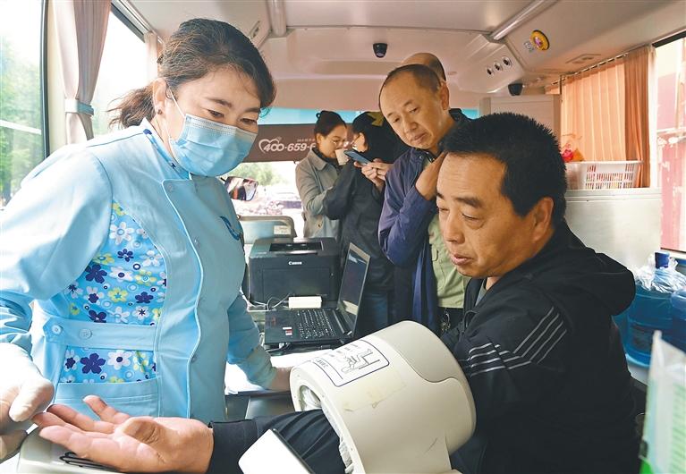 圖為醫(yī)護(hù)人員在為群眾測(cè)量血壓。記者 白瑪澤旺 攝