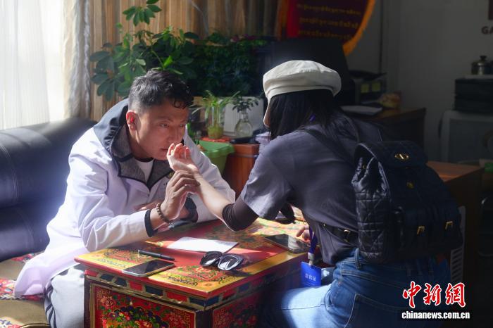 7月25日,西藏拉薩,海外華文媒體代表體驗藏醫(yī)診療。王利文 攝