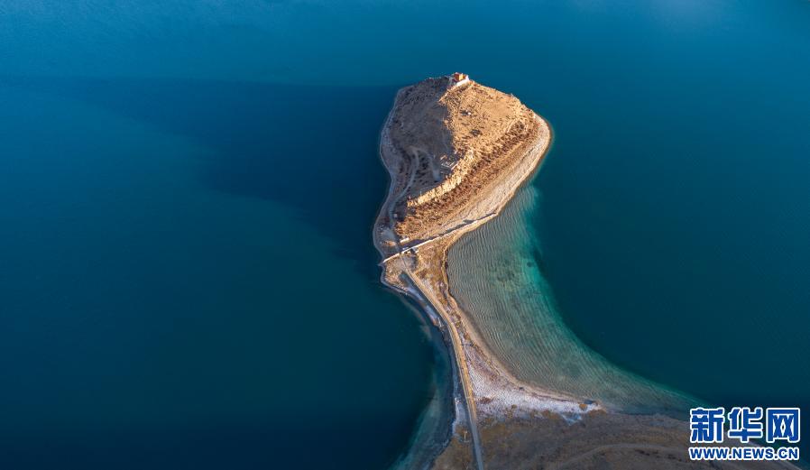 坐落于羊湖北岸一座小島上的日托寺(無(wú)人機(jī)照片,1月10日攝)。新華社記者 孫非 攝