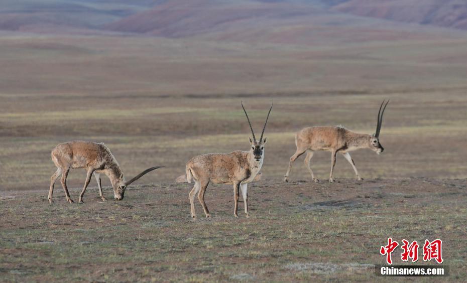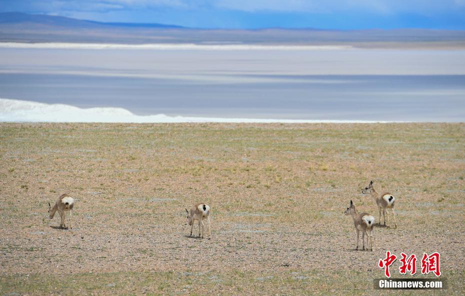 6月17日,西藏那曲羌塘草原上的藏羚羊。羌塘草原位于西藏自治區(qū)北部,平均海拔超過4600米,是目前中國海拔最高、面積最大的自然保護區(qū)。這里是野生動物的樂園,藏羚羊、藏原羚、藏野驢等珍稀野生動物與雪山、草地、藍天、白云,構(gòu)成撼人心魄的壯美畫面。 中新社記者 貢嘎來松 攝