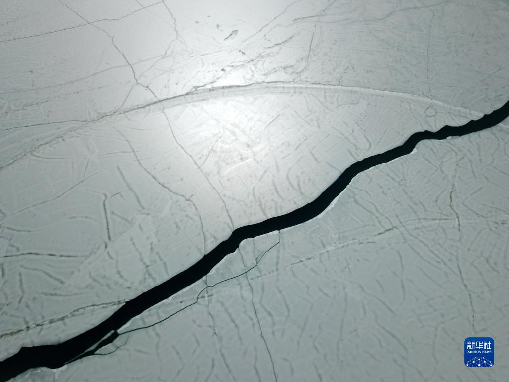 這是4月5日拍攝的班公湖冰面(無人機照片)。由于湖體狹長,部分湖面仍未解凍。新華社記者 姜帆 攝
