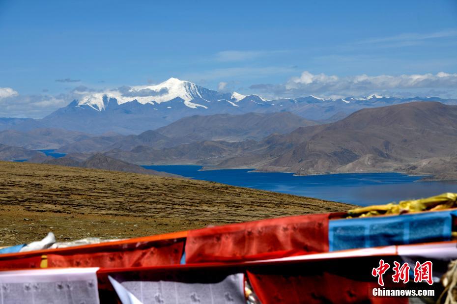 站在直拉山口俯瞰羊卓雍措,深邃藍的湖水似鑲嵌山間的藍寶石,與遠處的庫拉崗日雪山形成一幅壯美圖卷。圖為羊卓雍措。 李林 攝