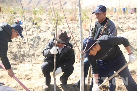 圖為拉薩市曲水縣才納鄉(xiāng)植樹造林現(xiàn)場(chǎng) 攝影:趙二召