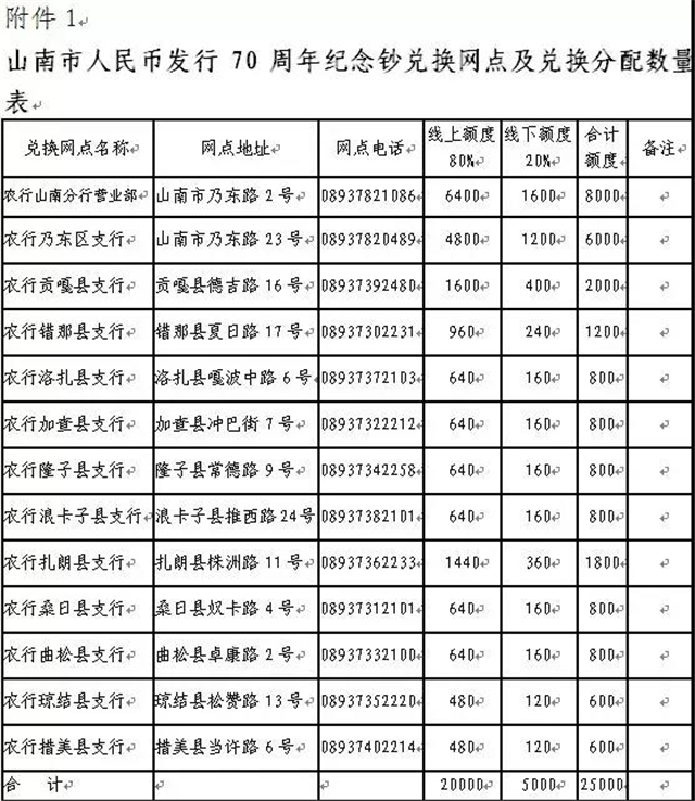 圖為山南市預(yù)約發(fā)行兌換網(wǎng)點(diǎn)及分配方案 圖片來源:中國人民銀行山南市中心支行