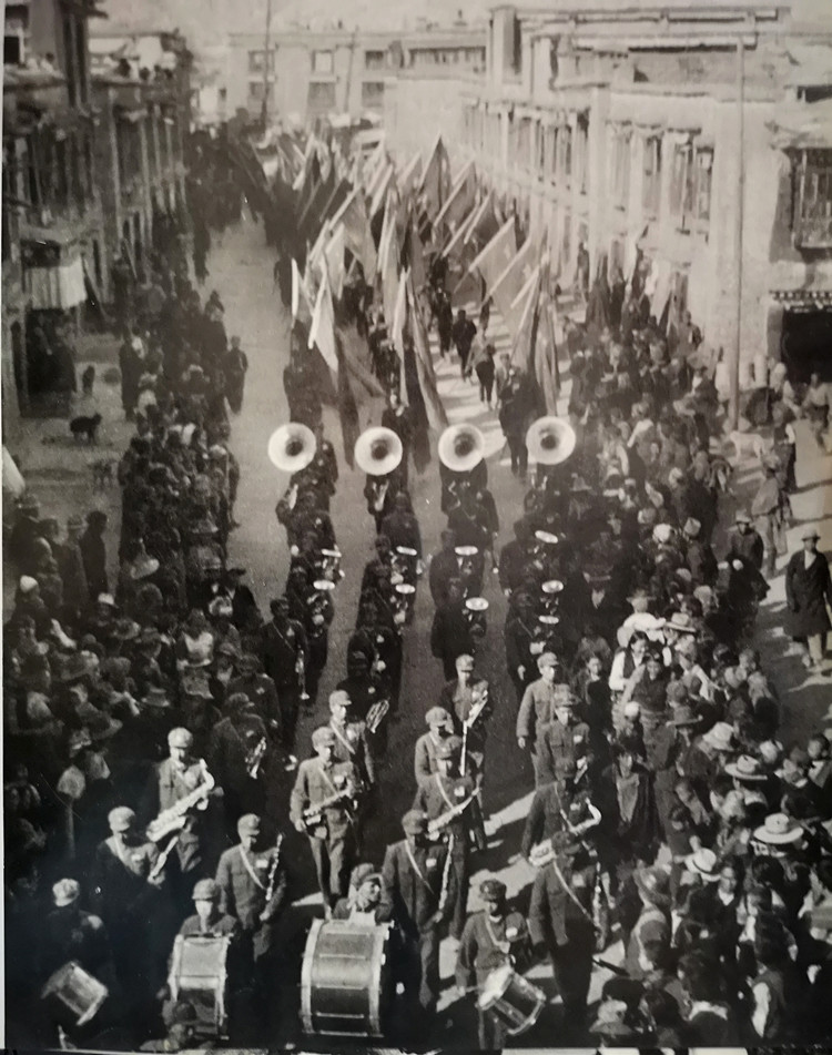圖為1954年12月25日,在拉薩舉行的慶??挡毓罚ń翊ú毓罚?、青藏公路通車典禮大會。翻拍:李元梅