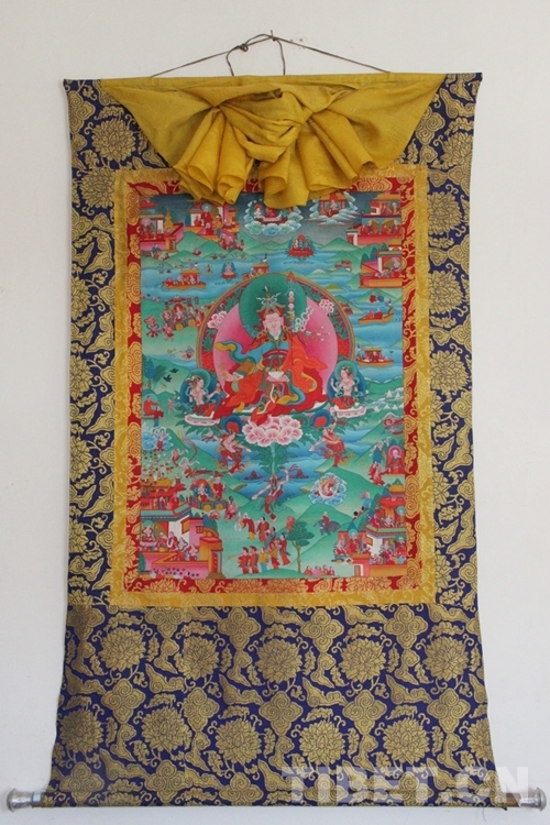 1924年,烏金拉松的兒子江村達(dá)吉出生了。他從小跟隨父親學(xué)習(xí)勉唐畫派繪畫技藝,成長為一名遠(yuǎn)近聞名的繪畫藝人。類烏齊寺八世吉仲活佛非常器重這位畫師,曾數(shù)次特意邀請他繪制唐卡,后來,江村達(dá)吉成為了八世吉仲活佛的畫師。