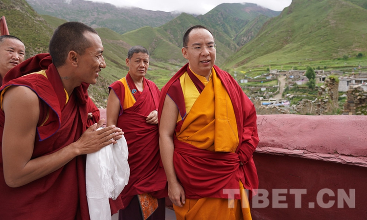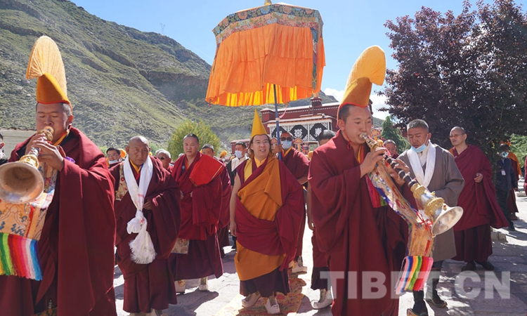 圖為十一世班禪在僧眾引領(lǐng)下走進熱堆寺 攝影:王淑