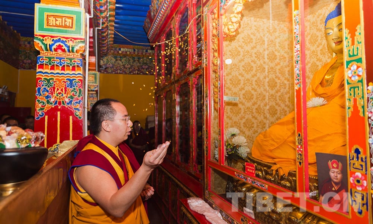 圖為十一世班禪在乳巴寺向佛像敬獻哈達 攝影:鄭朔