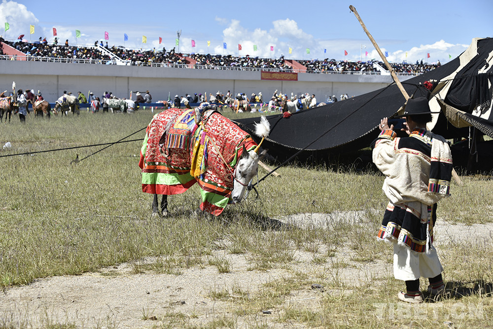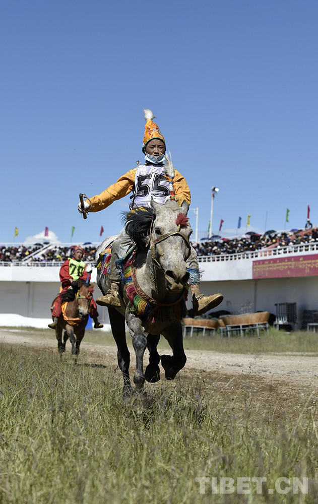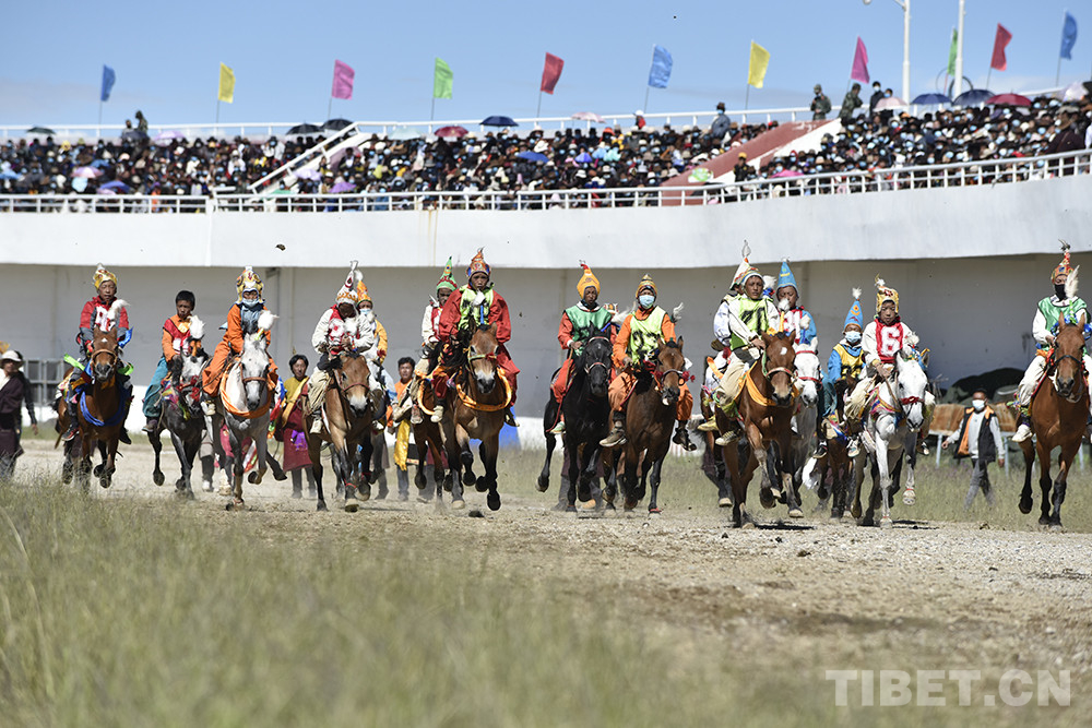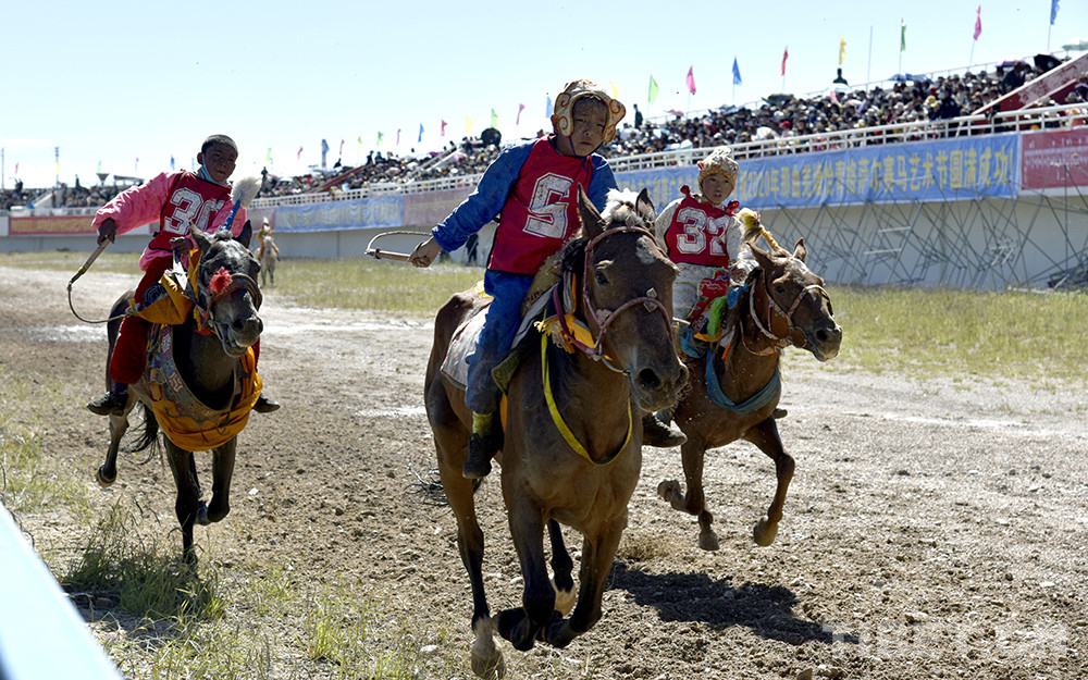 8月12日上午,西藏自治區(qū)那曲市2020羌塘恰青格薩爾賽馬藝術節(jié)的重頭戲——場內(nèi)速度賽馬比賽開始。賽道內(nèi),沙塵飛濺;看臺上,座無虛席,吶喊助威。