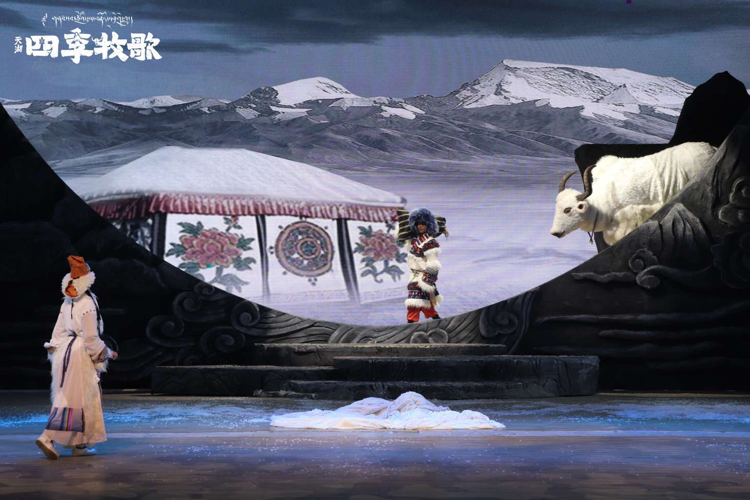 據(jù)悉,《天湖·四季牧歌》是由《序·天語》《春·融冰·相遇》《夏·富饒·相識》《秋·豐收·相愛》《冬·尋找·相思》《尾聲·天湖牧歌》六部分組成的多幕劇。