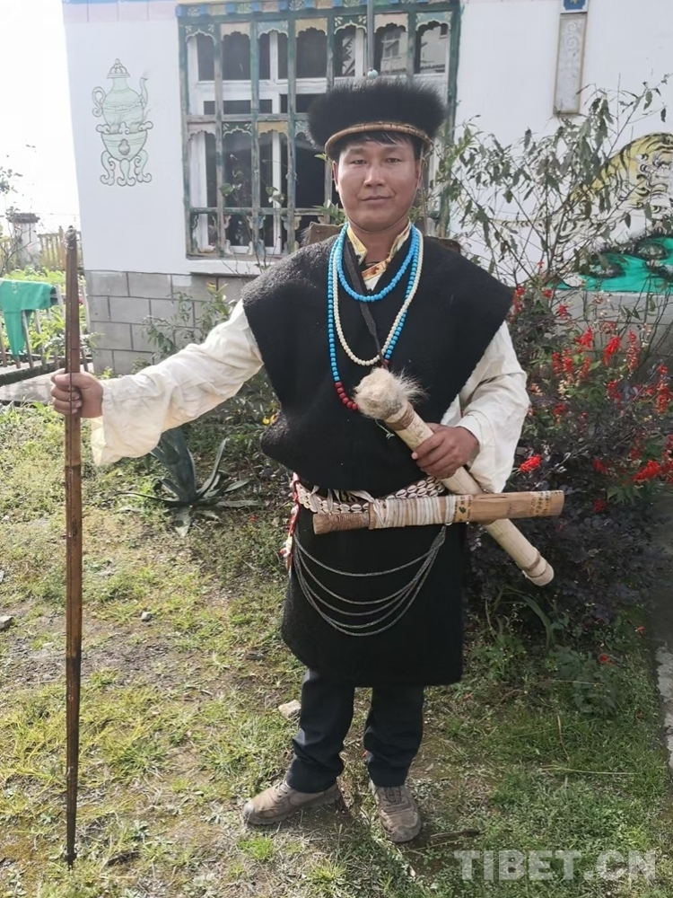 圖為身著珞巴族傳統(tǒng)服飾的羅布