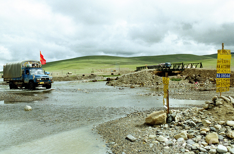 這座鐵橋長(zhǎng)180多米,橫跨在藏北最大內(nèi)流河扎加藏布江上,是前往文部辦事處和雙湖辦事處的必經(jīng)之地。每次只能通過(guò)一輛汽車(chē),汽車(chē)上橋常壓得橋板“吱吱嘎嘎”亂響,讓司機(jī)無(wú)不提心吊膽。每逢夏季,橋兩邊的公路軟得像海綿一樣。汽車(chē)在這里陷進(jìn)泥漿是常有的事。這里是汽車(chē)司機(jī)開(kāi)車(chē)最為頭痛的地方。
