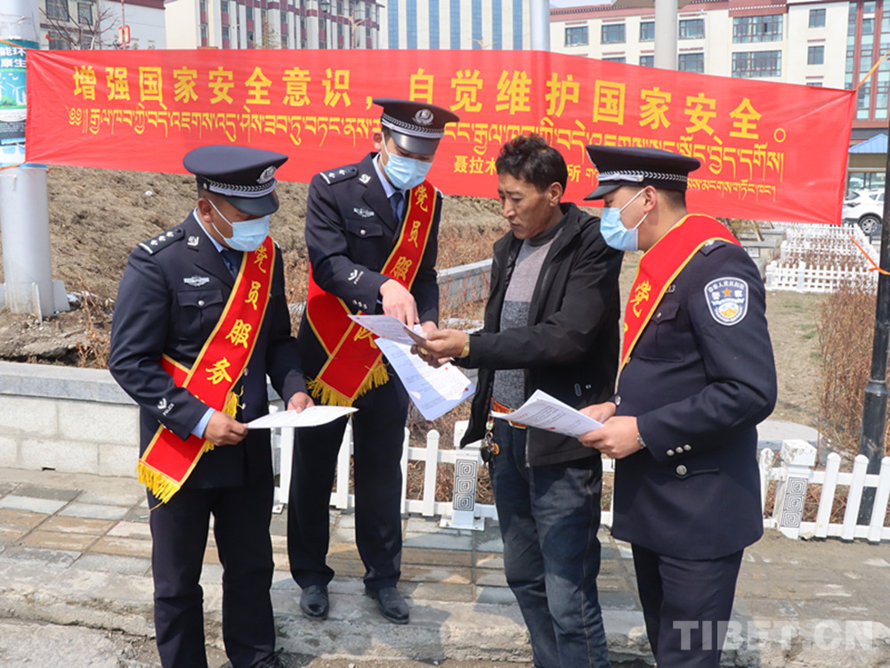 “12339,是國家安全機關受理公民和組織舉報電話。這條熱線是由國家安全部設立的,為了方便公民組織向國家安全機關舉報行為或線索。”在西藏日喀則市的街頭,日喀則邊境管理支隊民警達娃卓嘎為過往群眾講解“全民國家安全日”的相關知識。