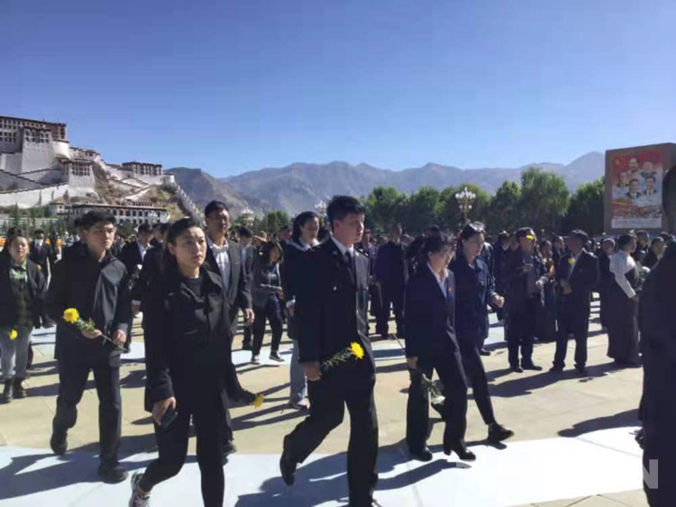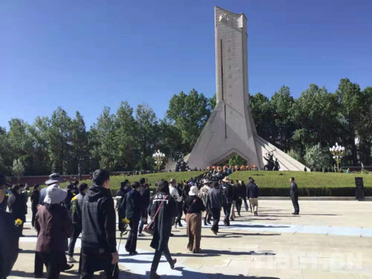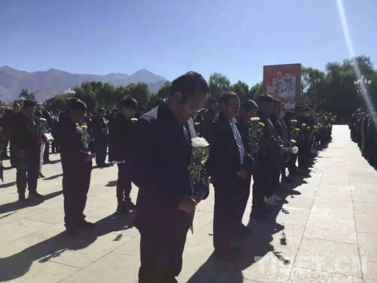 圖為向為西藏和平解放和社會主義革命與建設(shè)事業(yè)英勇犧牲的烈士們默哀 攝影:拉姆