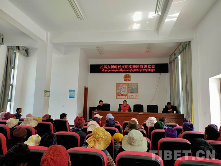 圖為山南扎囊縣扎其鄉(xiāng)新時代文明實踐所志愿者宣講黨史 扎囊縣 供圖