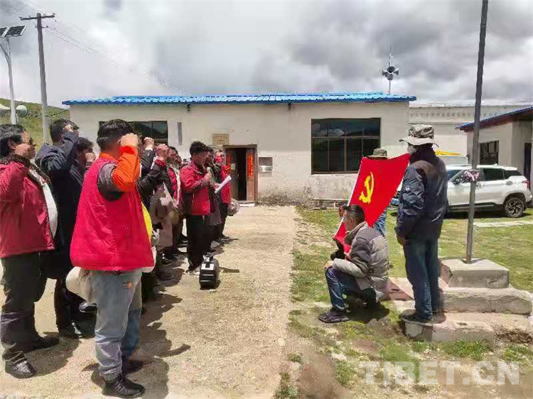 圖為那曲市色尼區(qū)油恰鄉(xiāng)干部群眾重溫入黨誓詞 攝影:馬建國