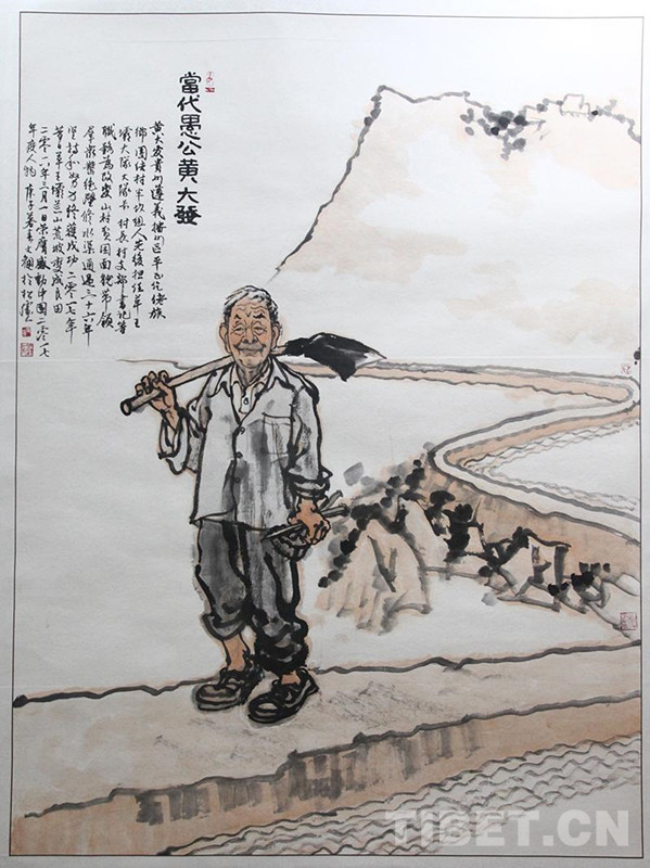 圖為中國(guó)畫(huà)作品《黃大發(fā)——遵義市播州區(qū)平正仡佬族鄉(xiāng)團(tuán)結(jié)村名譽(yù)村支書(shū)》,作者錢(qián)文觀