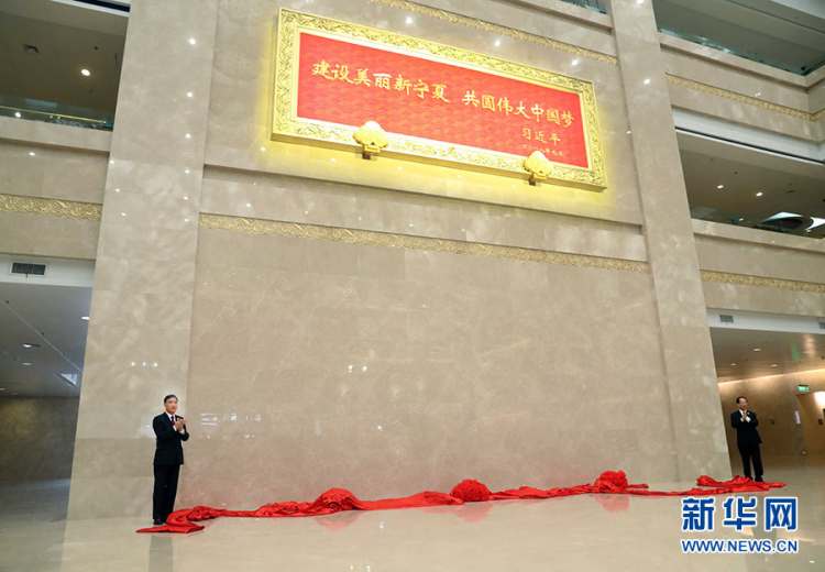 2018年9月19日,寧夏自治區(qū)成立60周年。中共中央政治局常委、全國政協(xié)主席、中央代表團(tuán)團(tuán)長汪洋率中央代表團(tuán)向?qū)幭馁浰土肆?xí)近平總書記題詞賀匾、《美麗寧夏》琺瑯器等紀(jì)念品。賀匾莊重大氣、意蘊(yùn)雋永。習(xí)近平總書記“建設(shè)美麗新寧夏 共圓偉大中國夢”的題詞位于正中。中央部分以中國紅為底色,襯托山水暗紋,體現(xiàn)天藍(lán)、地綠、水美的美麗寧夏。邊框由60朵高浮雕馬蘭花紋組成,象征寧夏回族自治區(qū)成立60周年的光輝歷程。兩個(gè)如意匾托表達(dá)了對寧夏人民萬事順意、吉祥美好的深切祝愿。
