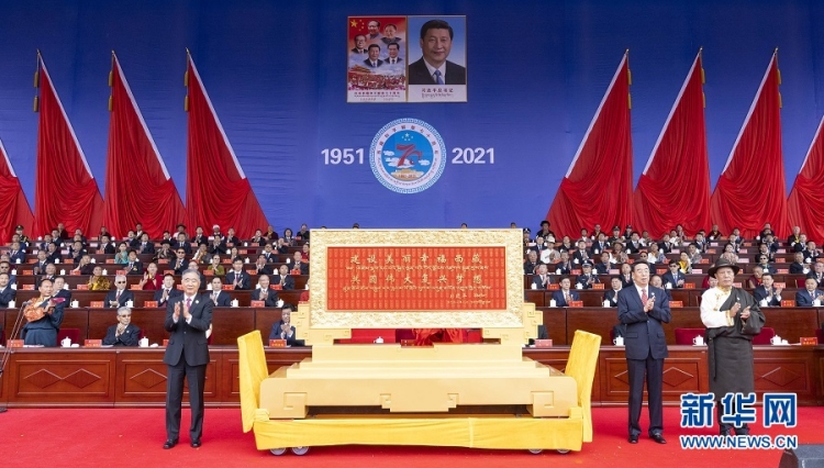 2021年8月19日,西藏自治區(qū)和平解放70周年。中共中央政治局常委、全國政協(xié)主席、中央代表團(tuán)團(tuán)長汪洋向西藏自治區(qū)贈送了中共中央總書記、國家主席、中央軍委主席習(xí)近平題詞的“建設(shè)美麗幸福西藏 共圓偉大復(fù)興夢想”賀匾等紀(jì)念品。
