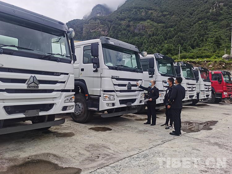 圖為拉薩海關(guān)關(guān)員監(jiān)管出口車輛 圖片由拉薩海關(guān)提供