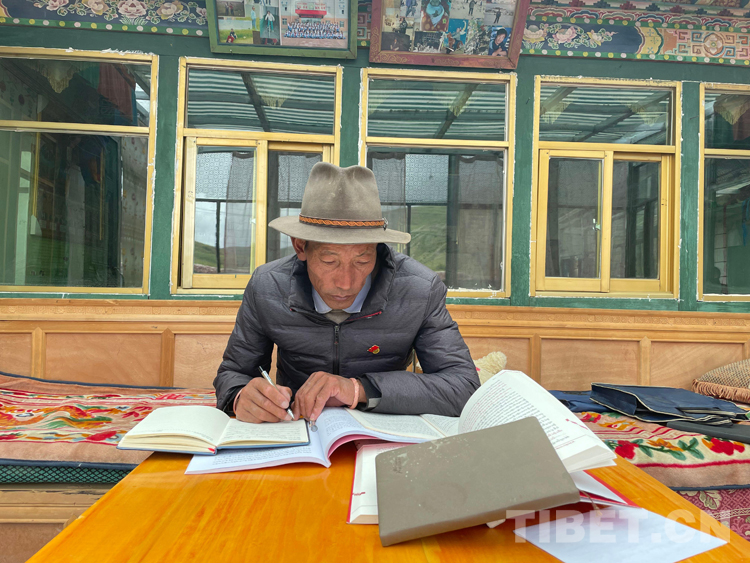 小到家庭糾紛,大到村民大會(huì),都會(huì)有索朗頓珠宣講普及法律法規(guī)和惠民政策的影子,因?yàn)樽鳛橐幻伯a(chǎn)黨員,他認(rèn)為有責(zé)任和義務(wù)向群眾宣傳現(xiàn)在的富足生活都要?dú)w功于中國共產(chǎn)黨。