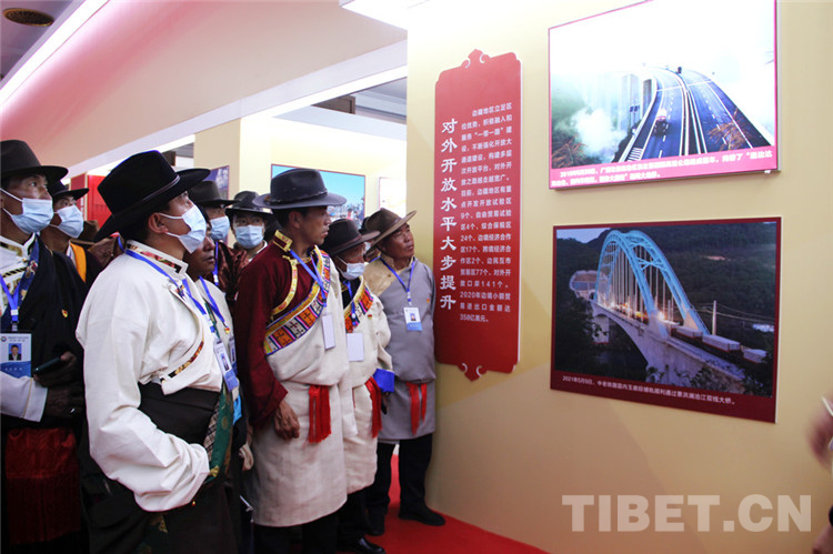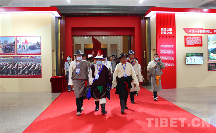 圖為西藏自治區(qū)基層干部步入“全國興邊富民成就展”展廳 攝影:王茜