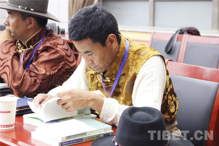 圖為西藏基層干部閱讀中國藏學研究中心贈書 攝影:王茜