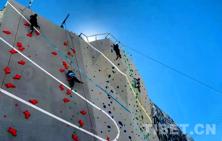 圖為體驗攀巖現(xiàn)場