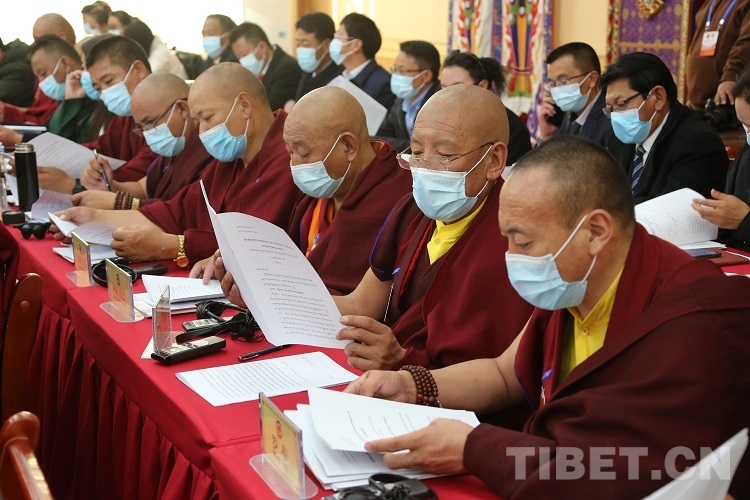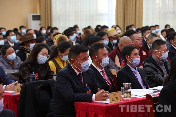 圖為政協(xié)委員聽(tīng)取政協(xié)第十一屆拉薩市委員會(huì)常務(wù)委員會(huì)向大會(huì)所作的工作報(bào)告 攝影:王佳豪