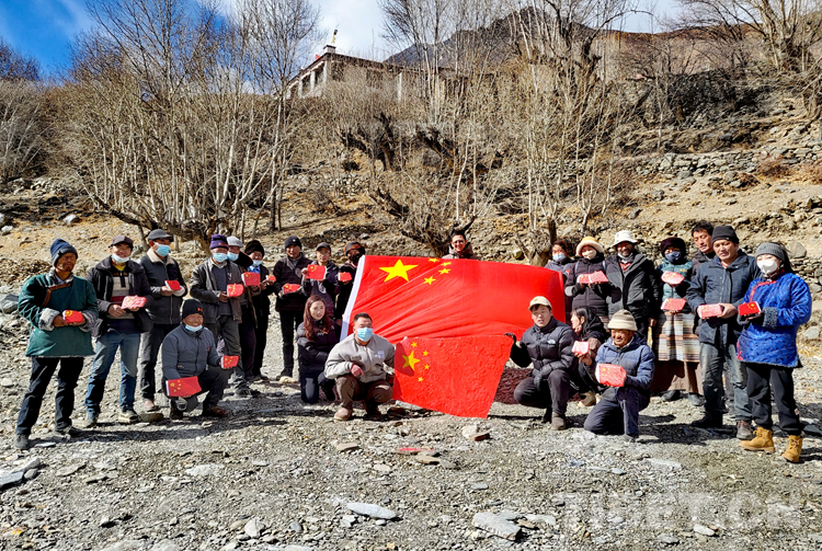 中國(guó)西藏網(wǎng)訊 1月13日,西藏自治區(qū)山南市浪卡子縣卡熱鄉(xiāng)黨委和拉薩市委辦駐邊據(jù)村工作隊(duì)組織的“同畫(huà)一面旗、共愛(ài)一個(gè)家”活動(dòng)在邊據(jù)村舉行??徉l(xiāng)6個(gè)村(居)的第一書(shū)記和邊據(jù)村的黨員、群眾代表參加此次活動(dòng)。