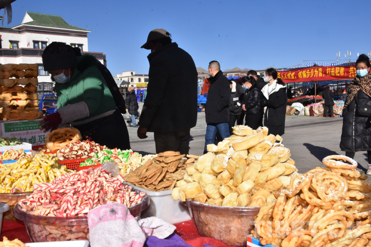 中國西藏網(wǎng)訊 近日,在西藏自治區(qū)日喀則市區(qū)最大的年貨集市,價格實(shí)惠、種類豐富的商品吸引了眾多市民前來置辦年貨。過年用的土特產(chǎn)青裸穗、奶制品、民族手工藝品扎木念琴、精美的糌粑盒、調(diào)料盒等賣得紅火。