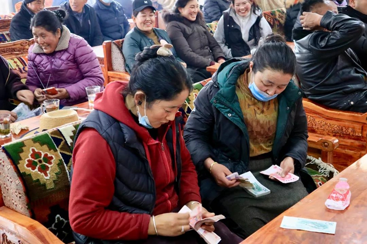 中國西藏網(wǎng)訊 “近幾年乘著國家政策的快車,再加上群眾敢干、肯干,大家可以足不出戶就能實(shí)現(xiàn)增收致富,在鄉(xiāng)村振興的道路上奮力書寫結(jié)地崗村美好的明天?!?月8日,西藏自治區(qū)林芝市工布江達(dá)縣工布江達(dá)鎮(zhèn)結(jié)地崗村村委會副主任貢覺桑堆在參加一年一度村集體經(jīng)濟(jì)分紅儀式上說道。