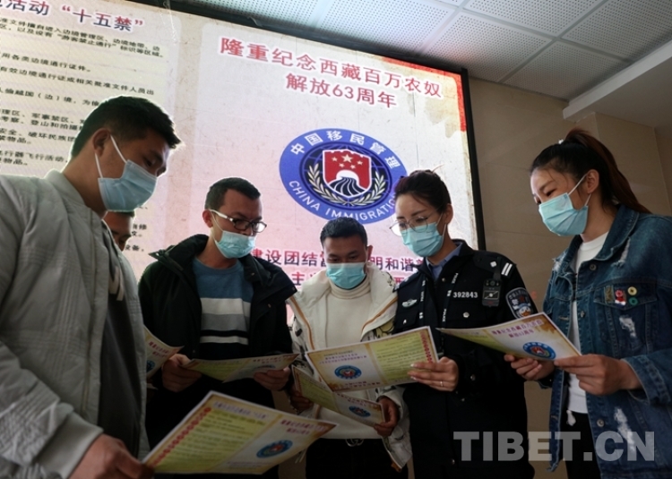 在西藏出入境邊防檢查總站執(zhí)法調查支隊辦證大廳,辦證室民警結合辦證室群眾多、人流量大的實際,開展以“攜手法律宣傳,共建平安邊境”為主題的宣傳活動。通過懸掛宣傳標語、設置新舊西藏對比圖片專欄、發(fā)放“新舊西藏對比圖及涉邊法律法規(guī)”為主題的宣傳單等多種渠道,講解西藏百萬農奴翻身得解放的歷史背景,讓更多游客群眾了解西藏民主改革以來波瀾壯闊的發(fā)展史和翻天覆地的新變化,銘記只有中國共產黨才能領導西藏各族群眾過上幸福美好的生活。