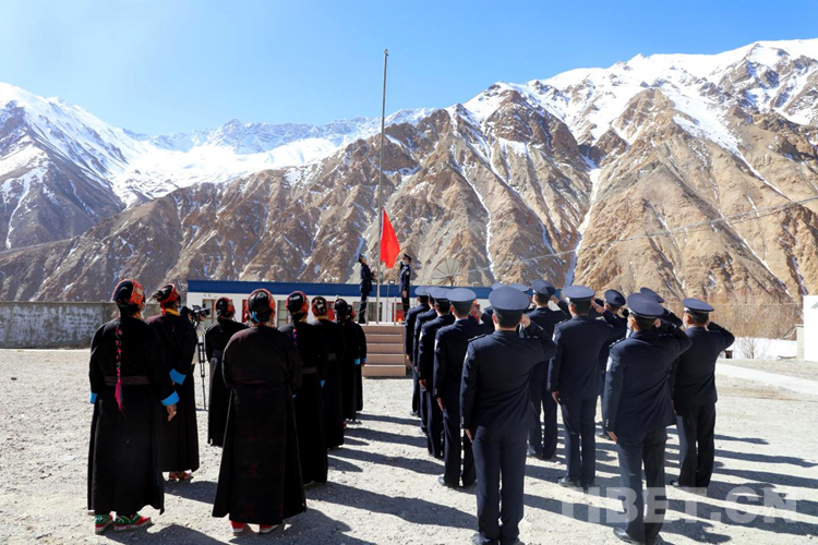 上午10時整,普蘭出入境邊防檢查站斜爾瓦執(zhí)勤點舉行紀(jì)念西藏百萬農(nóng)奴解放63周年“升國旗、唱國歌”儀式。參加儀式的民警整齊列隊、邊民群眾身著節(jié)日盛裝,大家共唱國歌,表達著對五星紅旗的崇高敬意和對中國共產(chǎn)黨的感恩之情。