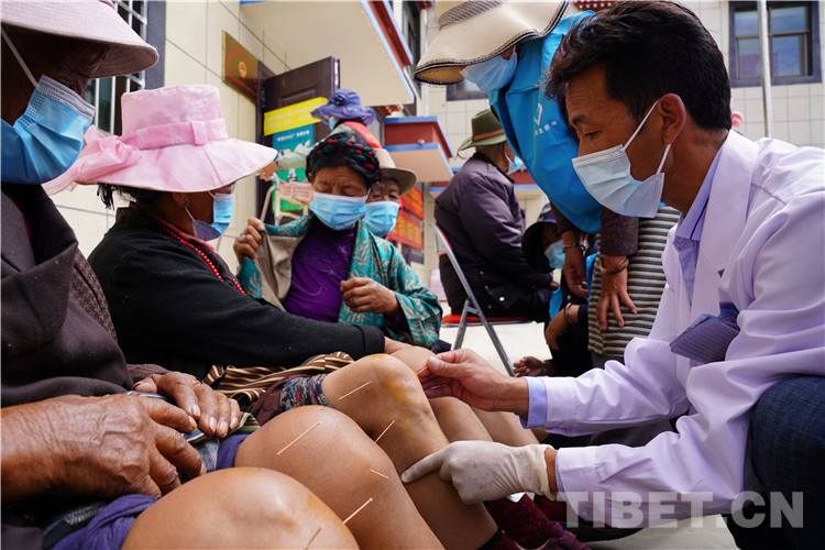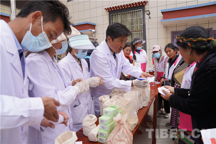 義診中,瓊結(jié)縣衛(wèi)健委(藏醫(yī)醫(yī)院)醫(yī)療健康志愿隊(duì)耐心接待每位前來(lái)咨詢的農(nóng)牧民群眾,悉心為農(nóng)牧民群眾診斷病情。