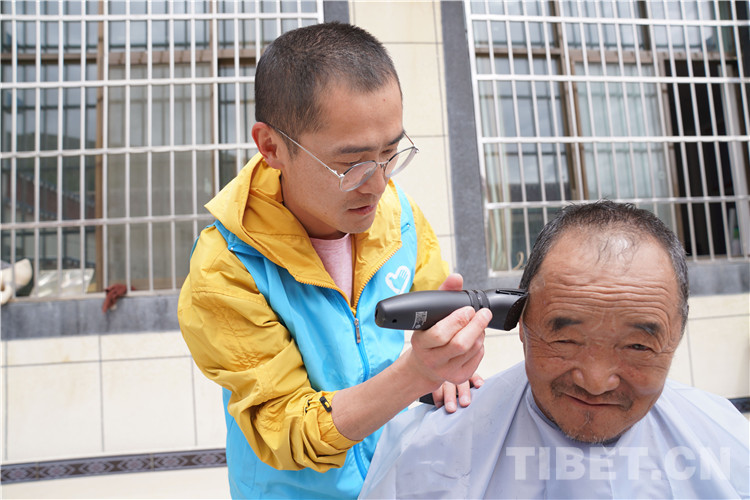 圖為青年志愿服務(wù)隊(duì)志愿者為老人理發(fā)