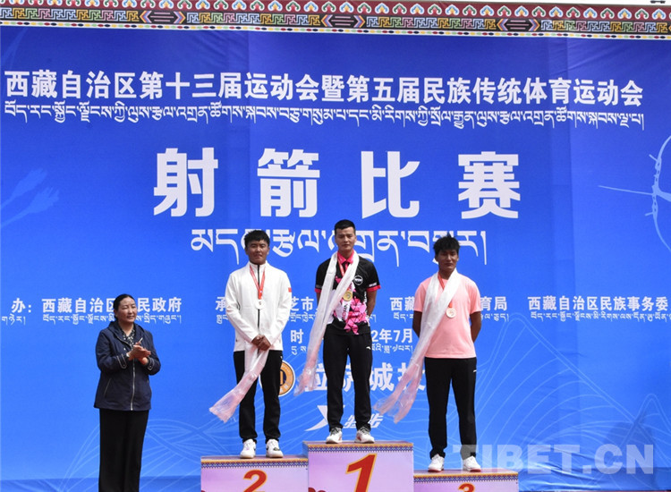 圖為7月29日,男子個(gè)人70米雙輪賽頒獎(jiǎng)現(xiàn)場(chǎng),中間為冠軍選手林芝市代表團(tuán)運(yùn)動(dòng)員嘎瑪江村,其右為亞軍選手拉薩市代表團(tuán)運(yùn)動(dòng)員瓊達(dá)次仁,其左為季軍選手教育代表團(tuán)運(yùn)動(dòng)員旦增羅布 攝影:拉姆