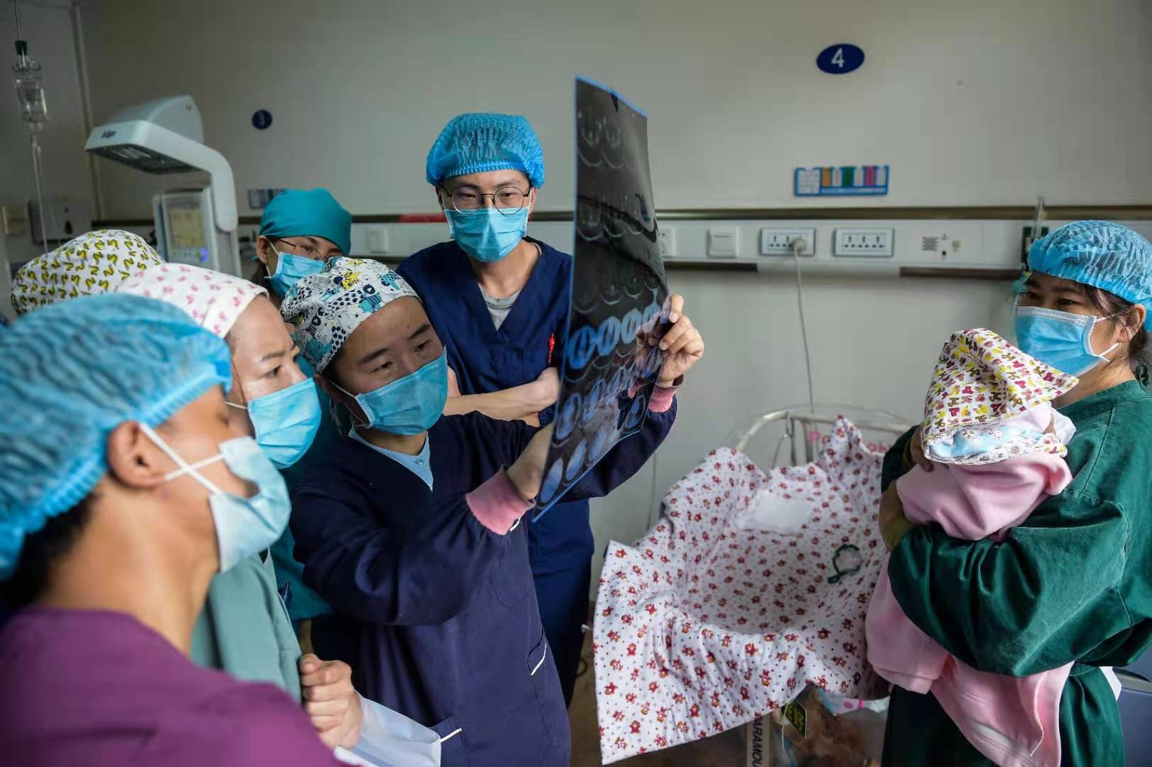 (左3為正在介紹患兒情況的韓同英醫(yī)生,點擊圖片收看視頻)