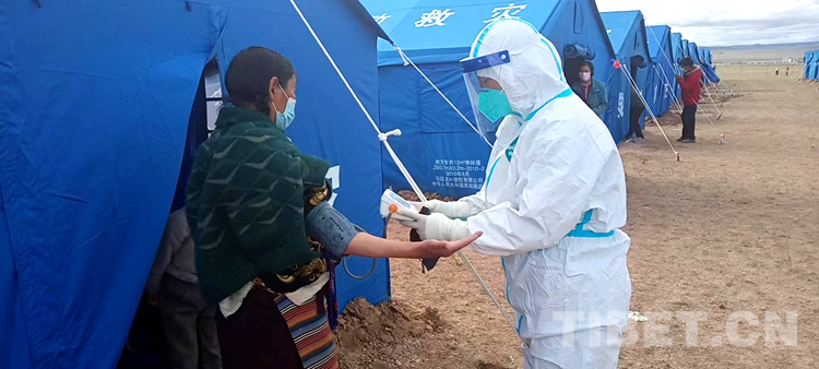 圖為醫(yī)護(hù)人員在測血壓 攝影:平措多杰