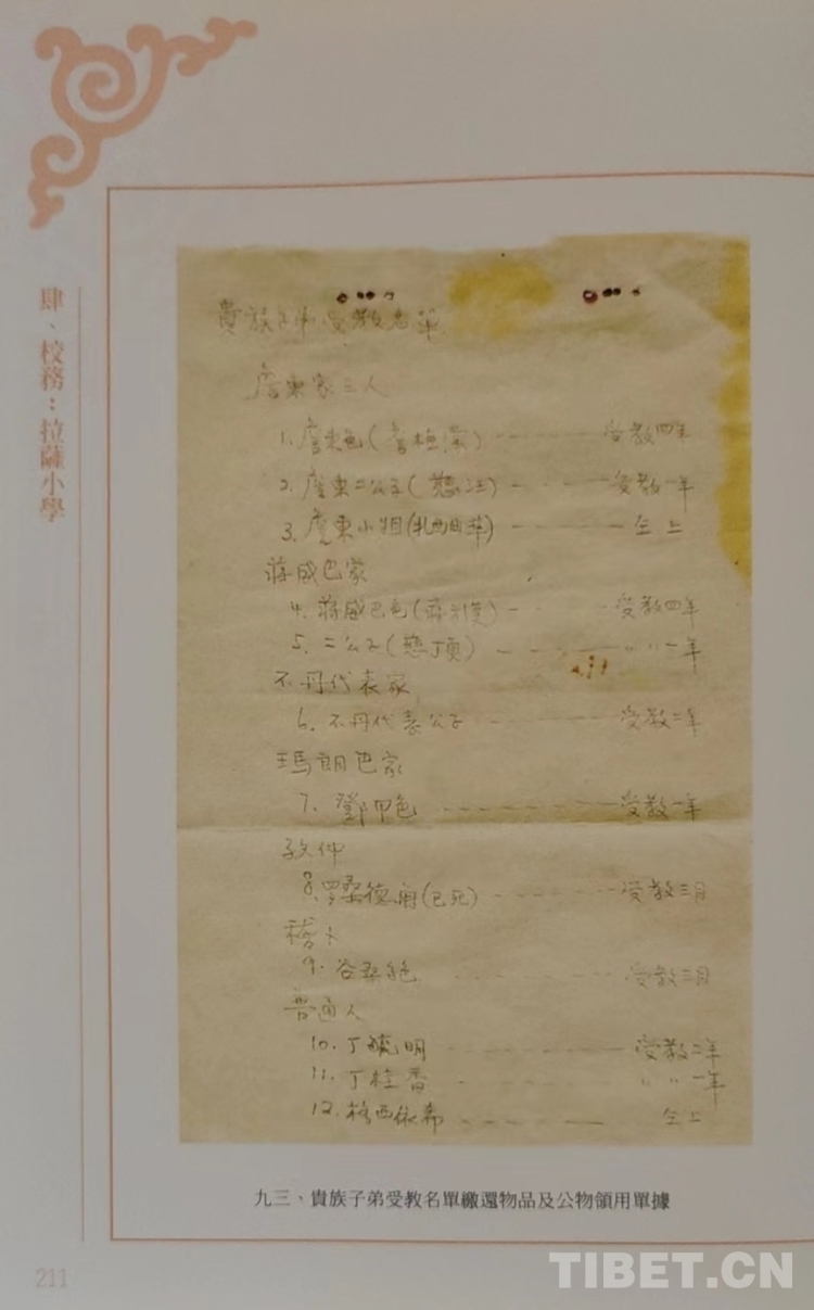 這期間,因?yàn)閷W(xué)校成績(jī)斐然,影響大增,不少貴族子弟也慕名前來(lái)就讀。拉薩小學(xué)專(zhuān)設(shè)一個(gè)特別班,招收貴族、富商的孩子,他們的教學(xué)是漢藏文一起上。在這個(gè)班里先后就讀的貴族子弟不少。如詹東家族的三兄妹,即詹東色、詹東·慈汪、詹東·扎西曲準(zhǔn)。詹東色有個(gè)漢語(yǔ)名字,叫詹逢春(又稱(chēng)詹植棠。他是個(gè)對(duì)中華文化非常喜愛(ài)的貴族子弟,會(huì)一口流利的四川話,還跟阿旺堪布的一位漢族徒弟學(xué)會(huì)了唱京戲。他曾在蒙藏委員會(huì)委員長(zhǎng)吳忠信進(jìn)藏主持達(dá)賴?yán)镒驳涠Y時(shí),全力給予了幫助。此外,在拉薩小學(xué)上學(xué)的還有瑪朗巴”家族、“稽卜”家族的子弟。十四世達(dá)賴的二哥嘉樂(lè)頓珠也曾在這里學(xué)習(xí)過(guò)。其他還有邊覺(jué)、唐麥、夏扎、雪貴巴等的子女。